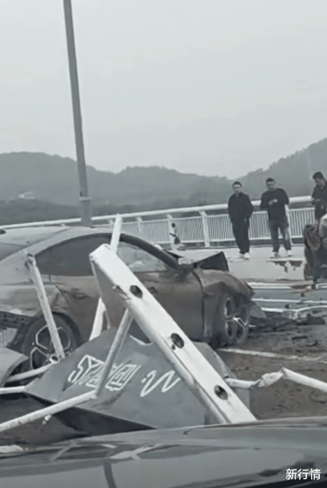一辆白色小米SU7失控撞断中央护栏,左前轮轴断裂后飞出十米,车体横跨双向车道与货拉拉相撞,导致交通拥堵两小时。