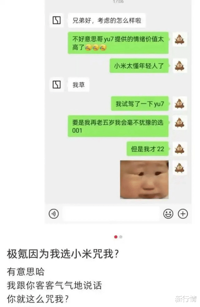从曝光的聊天记录来看,该顾客坦诚表示,小米YU7所提供的情绪价值十分契合年轻人需求,自己年仅22岁,若再年长5岁可能会选择极氪001。