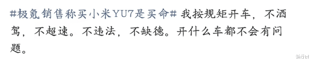 其中明确表示“想买人生第一辆车必须选极氪001,想买人生最后一辆车才选小米YU7”,更直言“你买的不是259800元,你买的是你的命”。